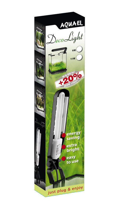 VILÁGÍTÁSLumen és időAjánlott megvilágítási szint: 20-60 lumen/ liter megvilágítás (kb. 2-4 Watt fény 4,5 liter vízre), 8-12 óra / nap időtartamban. Általánosan igaz, ha a növény fényigénye nagy, akkor 1 Watt / liter világítás ajánlott, ha csak közepes, akkor a 0,5 Watt / liter is elég. Egy 0,75 Watt / liter fény körülbelül otpimális. Minél erősebben világítunk, annál inkább megindulhat a zöld algásodás. A világítás időtartamát legjobb ha kikisérletezzük. Nem mindegy hogy milyen magas az akvárium. A neon mennyire tud az akvárium aljára levilágítani. Egy házilag barkácsolt foglalat mögé Mylar fóliát, alufóliát, tükröt, vagy egy fehér hátteret kell tenni, ezzel növellhetjük a fényerőt. A napfény hajnalban nagyjából 3500 K, a tipikus nyári fény pedig 6500 K színhőmérsékletű (édesvizi akváriumhoz ilyen világítást érdemes választanulnk). Az ennél magasabb színhőmérsékletű (pl 12000-20000 Kelvin) hatol a víz mélyebb rétegeibe, de ez inkább sós víznél fontos. SpektrumA fotoszintézisben a kék és a piros színű fény játszik legnagyobb szerepet, ezért fontos hogy a kiválasztott égőtest milyen hullámhosszon milyen intenzitással sugároz, azaz milyen a "színspektruma". A fehér fény teljes spektrumából, a piros és a kék fény a leghatásosabb szín a növények fotoszintéziséhez. A zöld fényt a növények legtöbbje visszaveri. A kék spektrumot növekedéskor használják a növények a legjobban (úgy mint az algák is)