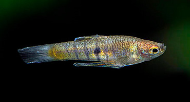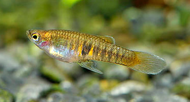 Elegáns törpefogaspontyocskaNeoheterandria elegans - Tiger TeddyNeoheterandria elegans egy nagyon ritka faj, apró folyókban él Columbiában. A hal testének első fele inkább zöldes-barna színű, de a hátsó részen gyönyörű tigris mintázatú, fekete és arany függőleges csíkok borítják. A hátúszó alatti csík megvastagodott, szinte ék alakú és körülötte arany színű. Egyes egyedeknél ez vörös, vagy sötétbarna színű. A páratlan úszók gyarkran sötét barna vagy arany színűek és a széleiken kékek. Kedvelik a melegebb vizet, ezért figyeljünk, hogy akváriumukban ne csőkkenjen a vízhőmérséklet 24 °C alá, ezenkívül ellentétben sok elevenszülővel jól bírják a lágyabb vizet is. A hímeknek módosult farok alatti úszója, ún genopodiuma van, ezenkívűl színezetük élénkebb és testük rövidebb és karcsúbb, mint a nőstényeké. A tenyészhalaknak ívás előtt adjunk jó minőségű élő eleségeket és akkor a szaporodással nem lesz problémánk. A nőstény 1 hónapos periódus alatt 3-4 naponta hoz világra 1-4 utódot. Az ivadékok viszonylag kicsik, testük 2-3 mm hosszú, etetésük papucsállatkával, vagy más nagyon apró élő eleséggel megoldható. A szülők ritkán eszik meg a kicsiket