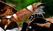 Sepregető/legyező garnélaBamboo Shrimp - Atyopsis moluccensisEgyéb elnevezései: Bamboo shrimp, Singapore shrimp, magyarul pedig sepregető vagy legyező garnélának nevezik. Az Atyopsis moluccensis szintén elég elterjedt a hazai kereskedésekben, így könnyen beszerezhető. Alapvetően barna színű, oldalán csíkokkal, a hátán pedig egy világos csík húzódik végig. Ez a faj nagyon látványos, hiszen nincsenek ollói, mivel azok látványos legyezőkké módosultak az evolúció révén, így nagyon különleges táplálkozási módja is, hiszen ezekkel a legyezőkkel szűri ki a táplálékot. Emiatt rendkívül hasznos állat az akváriumban, hiszen folyamatosan szűri, tisztítja a vizet. Ahogy leeszi az algákat a növényekről, "felsepri" a lehulló haltápot, és szűri a vizet. Nagy mérete miatt bátran ajánlható halak közé is. És békés mivolta miatt kisebb garnélákkal is társítható. Szeret az áramlásban állni kinyitott legyezőkkel, melyekkel kiszűri az eleséget magának.