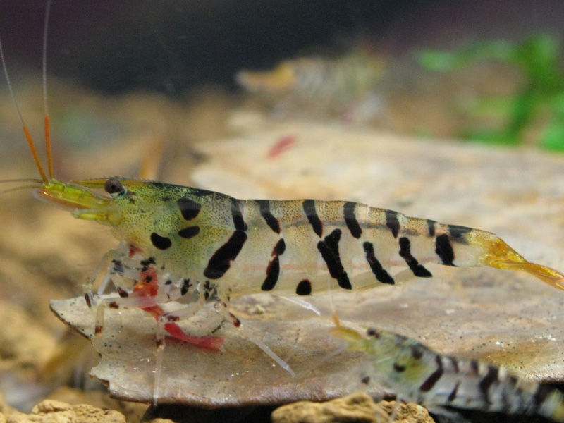 Víz paraméterek Ők inkább lágyabb és kissé savas vizet kedvelik. A Felnőtt garnélarák alkalmazkodhat a keményebb lúgos vízhez is, de élettartamuk jelentősen csökken. Ez néha még megelőzhető ioncserélt víz hozzáöntésével. Amíg az akvárium víz enyhén savas, lágy, a tigris garnéla nem igényel különleges figyelmet. Mint minden törpe garnéla, fontos, hogy az összes víz paraméter folyamatosan jó legyen. Tenyésztése könnyű Nagyon jól szaporodik. Minden női Tigris termel 20-25 petét és ezt folyamatosan, majd lerakás után egy hét mulva újrakezdi. Etetése könnyű Spenót, cukkini, alga ostya, "Shrimp Natural". Táplálása naponta egyszer. Kevés ennivalót kell adni neki, csak annyit hogy az evést be tudja befejezni 2-3 órán belül, mert az élelmiszer bomlása, rossz vízminőséget, és halált okozhat. A garnélarákok dögevők a vadonban. Esznek, amit találnak, és nem használják az állandó táplálékforrást. Néha érdemes kihagyni 1-2 napot az etetéssel, hogy a rákok megtisztítsák az akvárium aljzatát is.